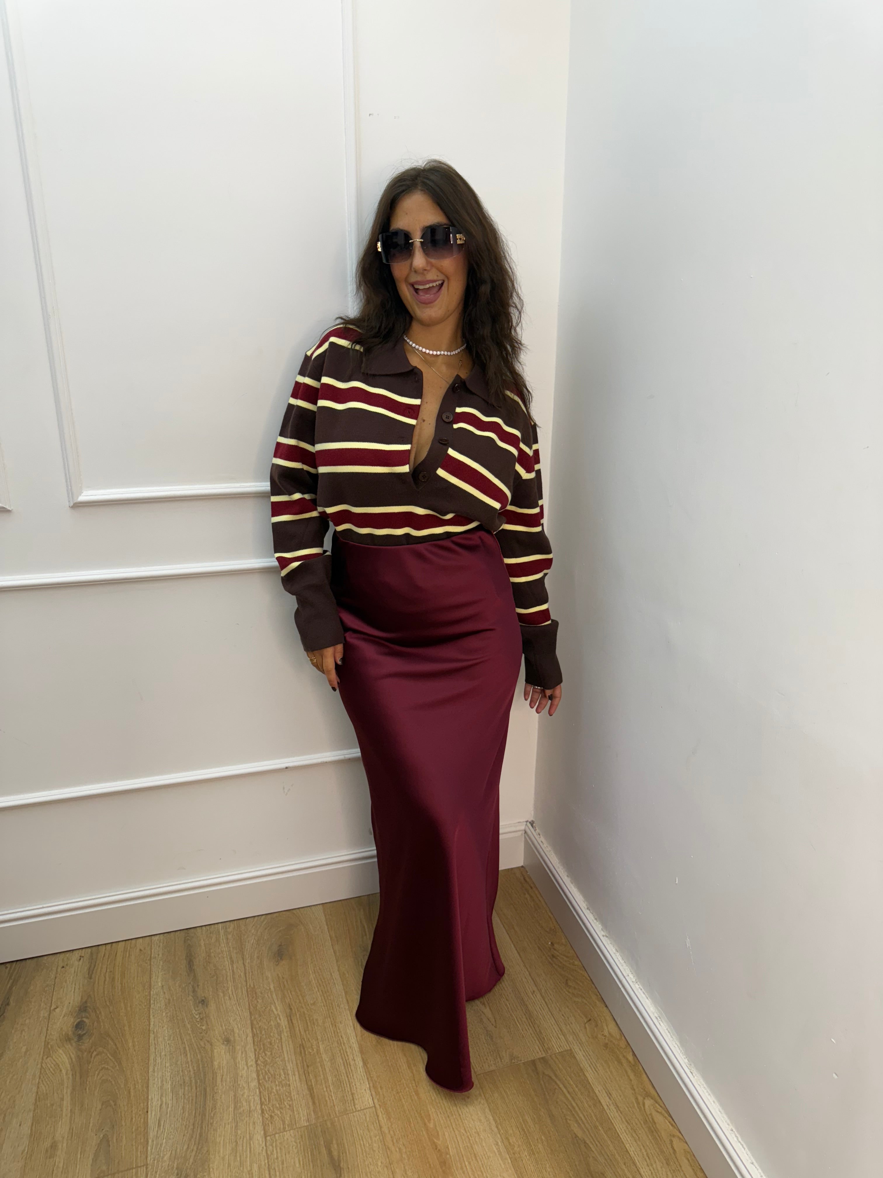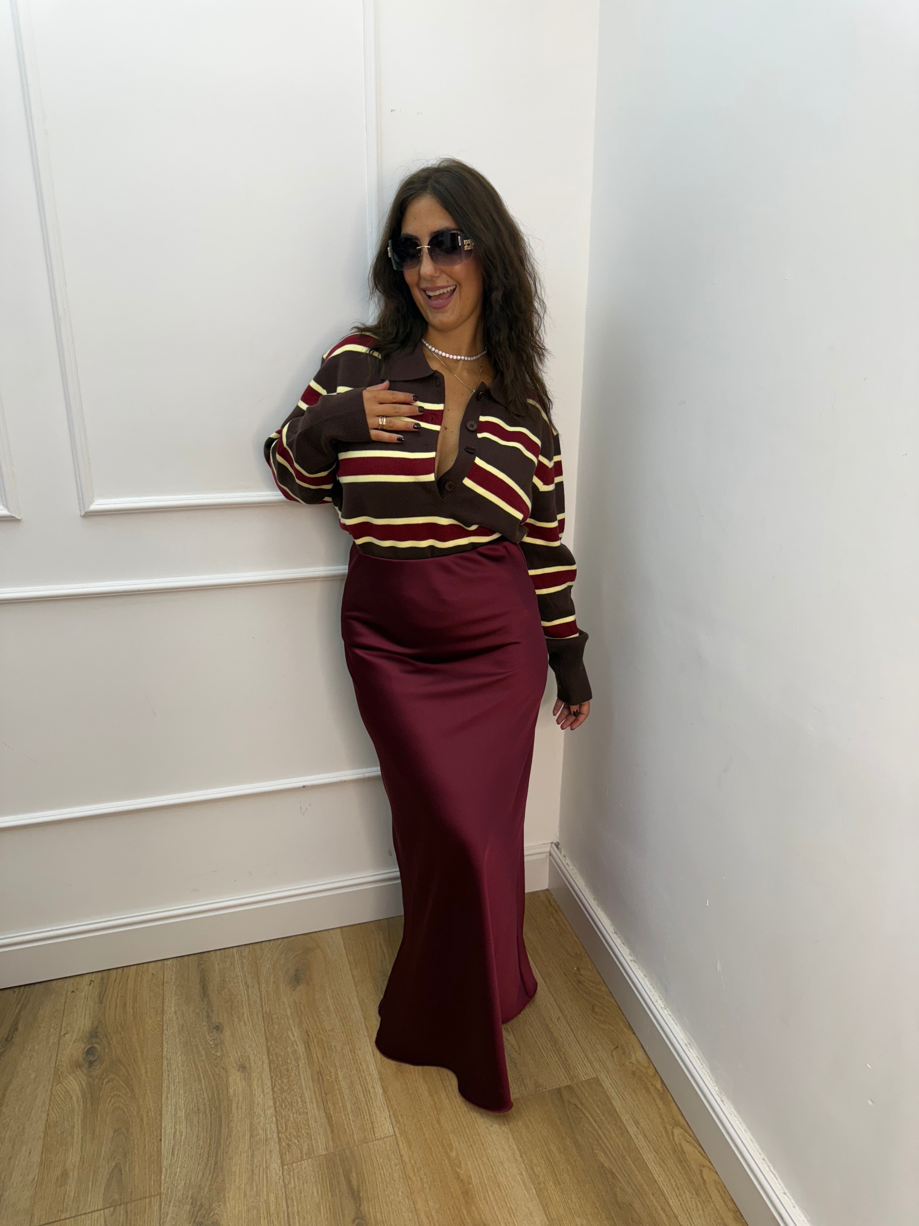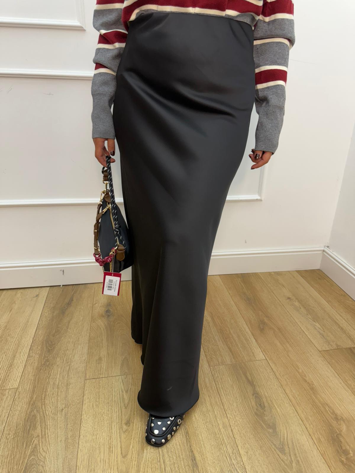 Gonna lunga satin tessuto rigido fascia sul ventre