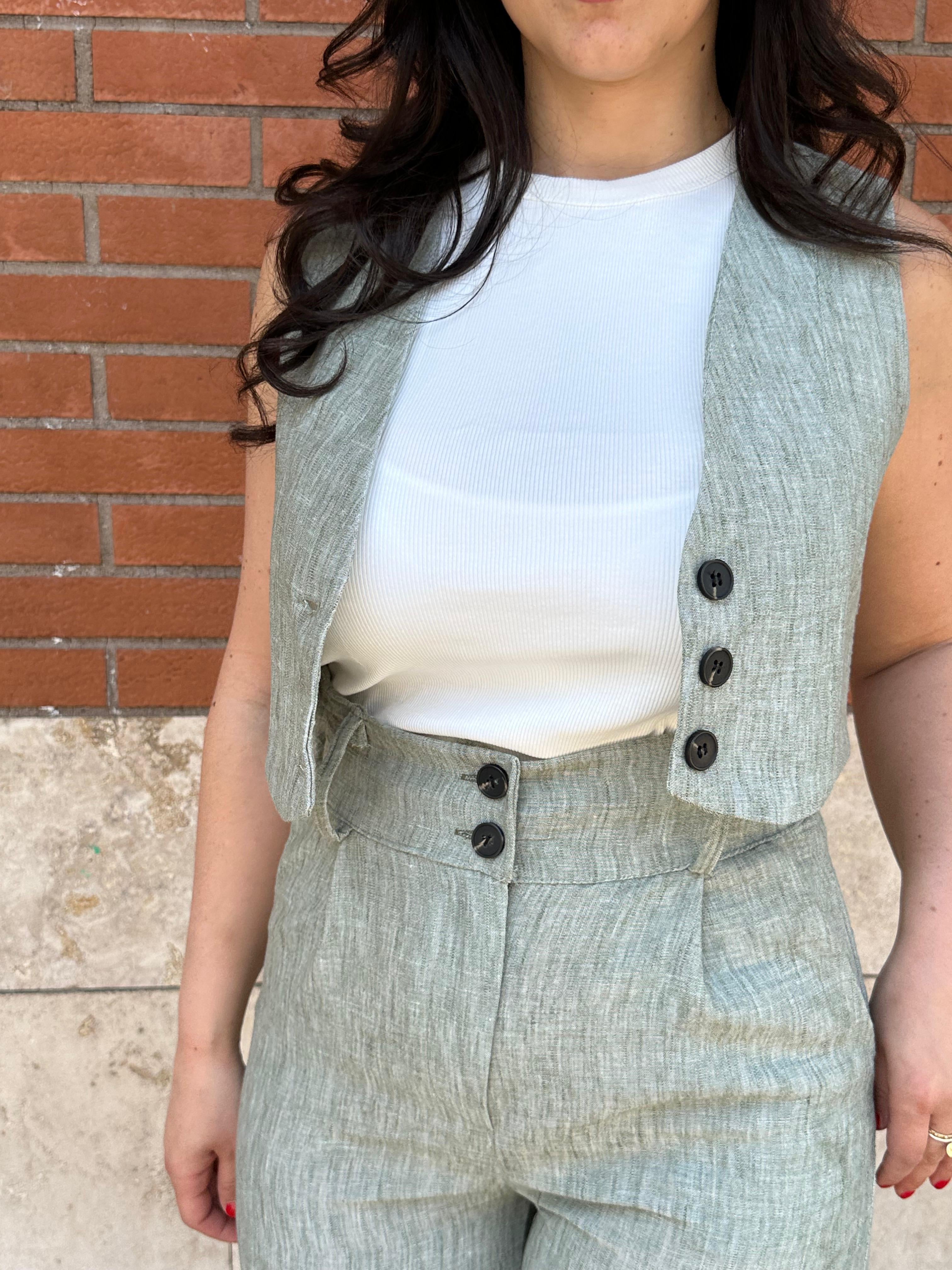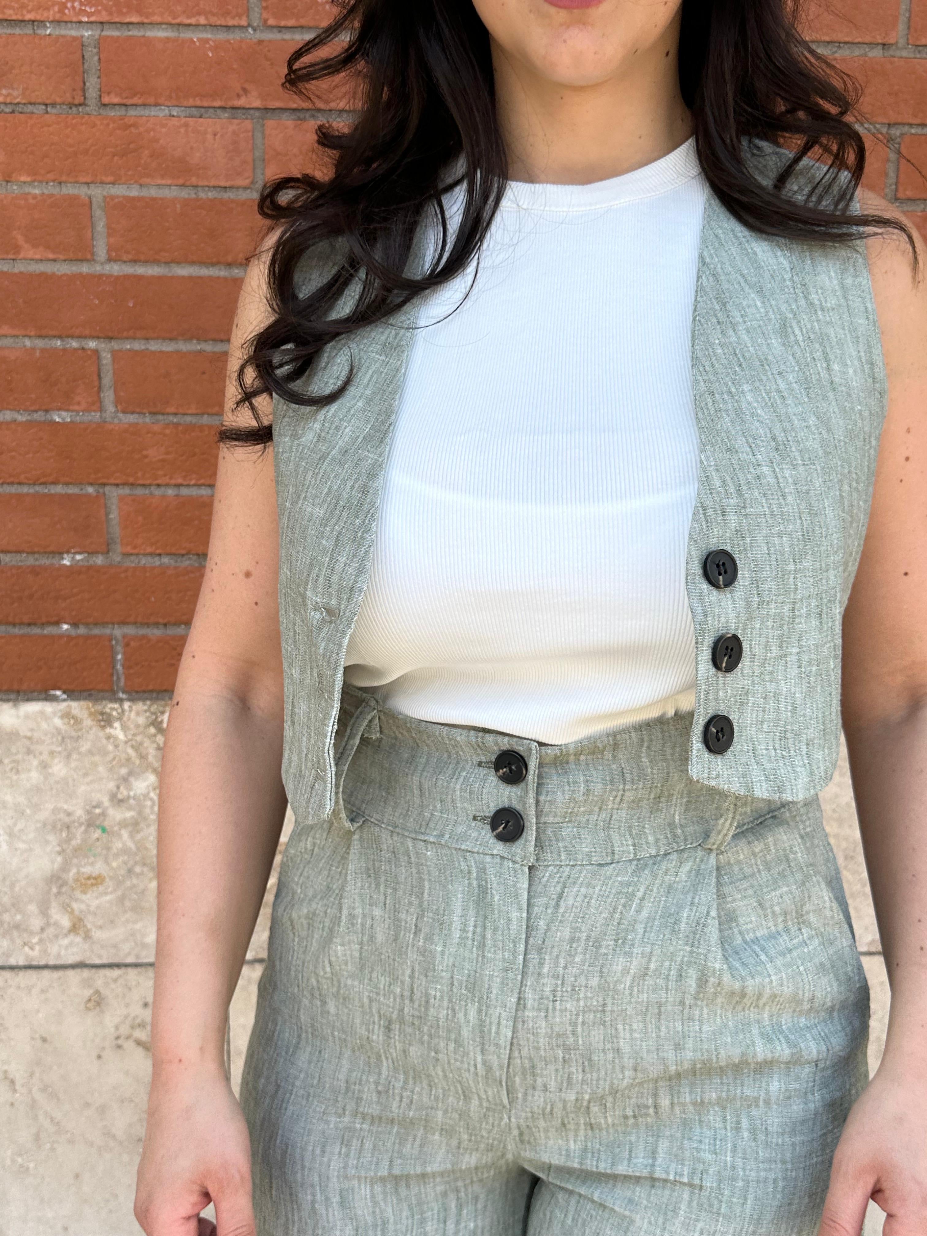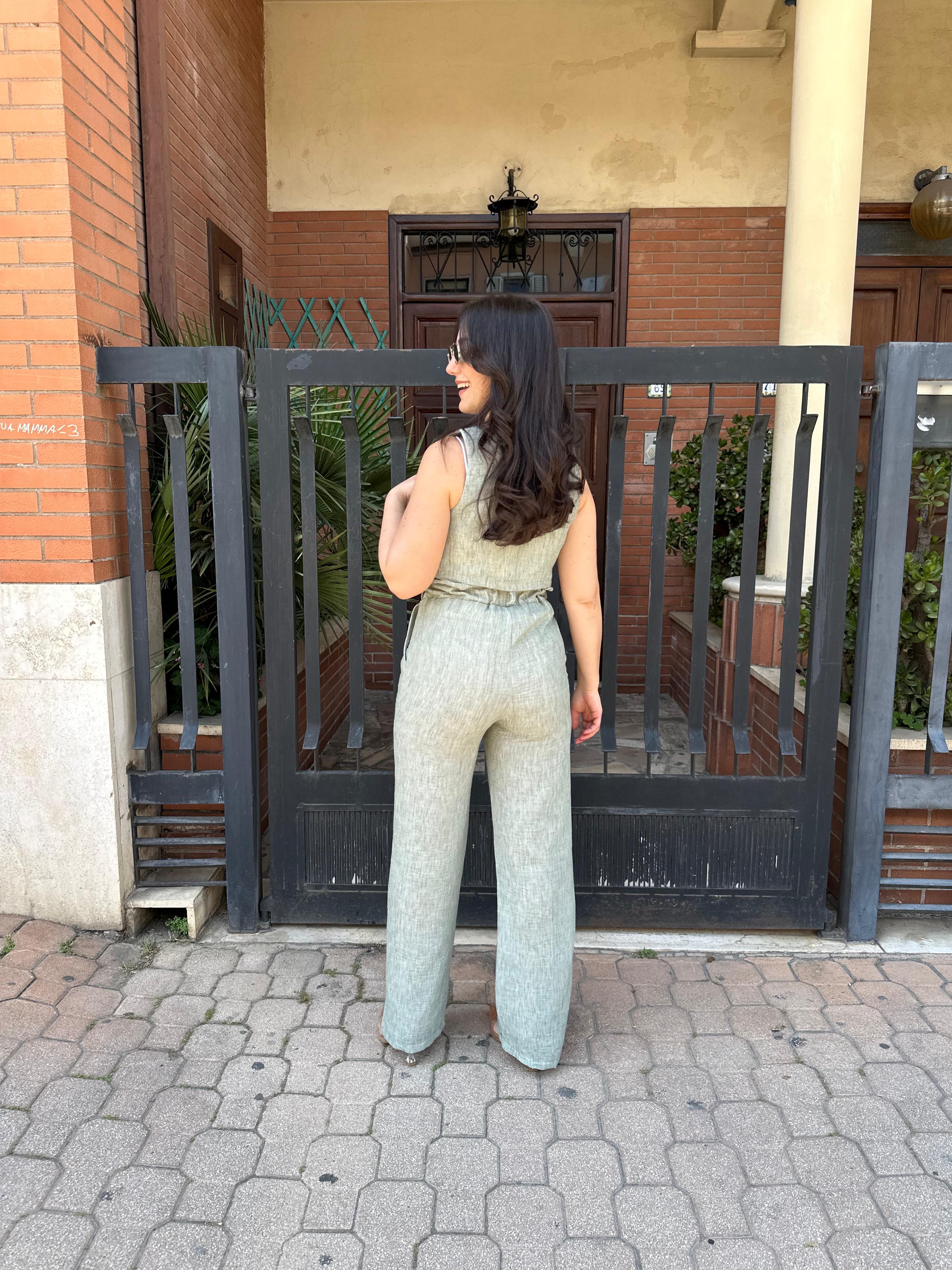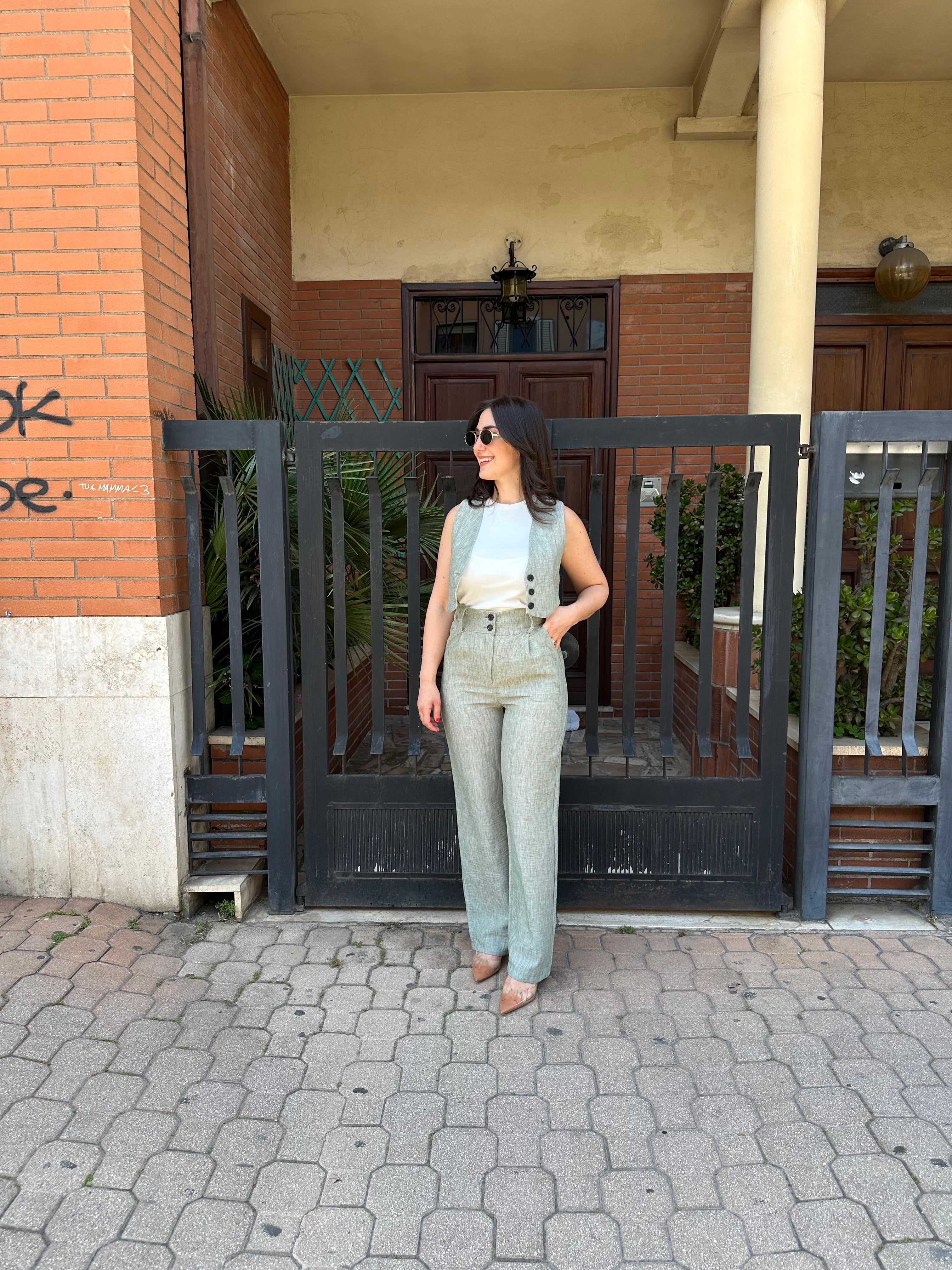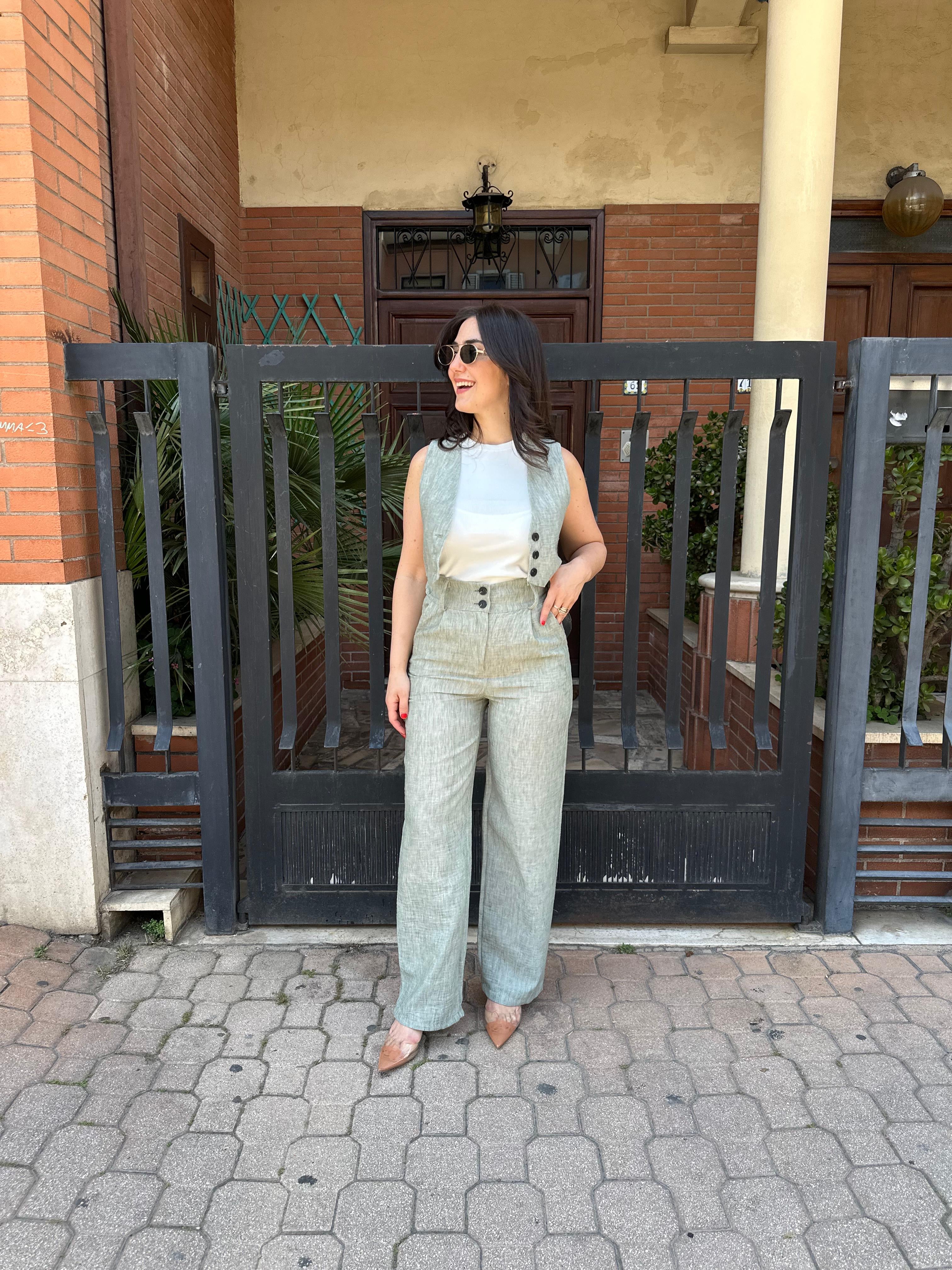 Coordinato misto lino con gilet e pantalone