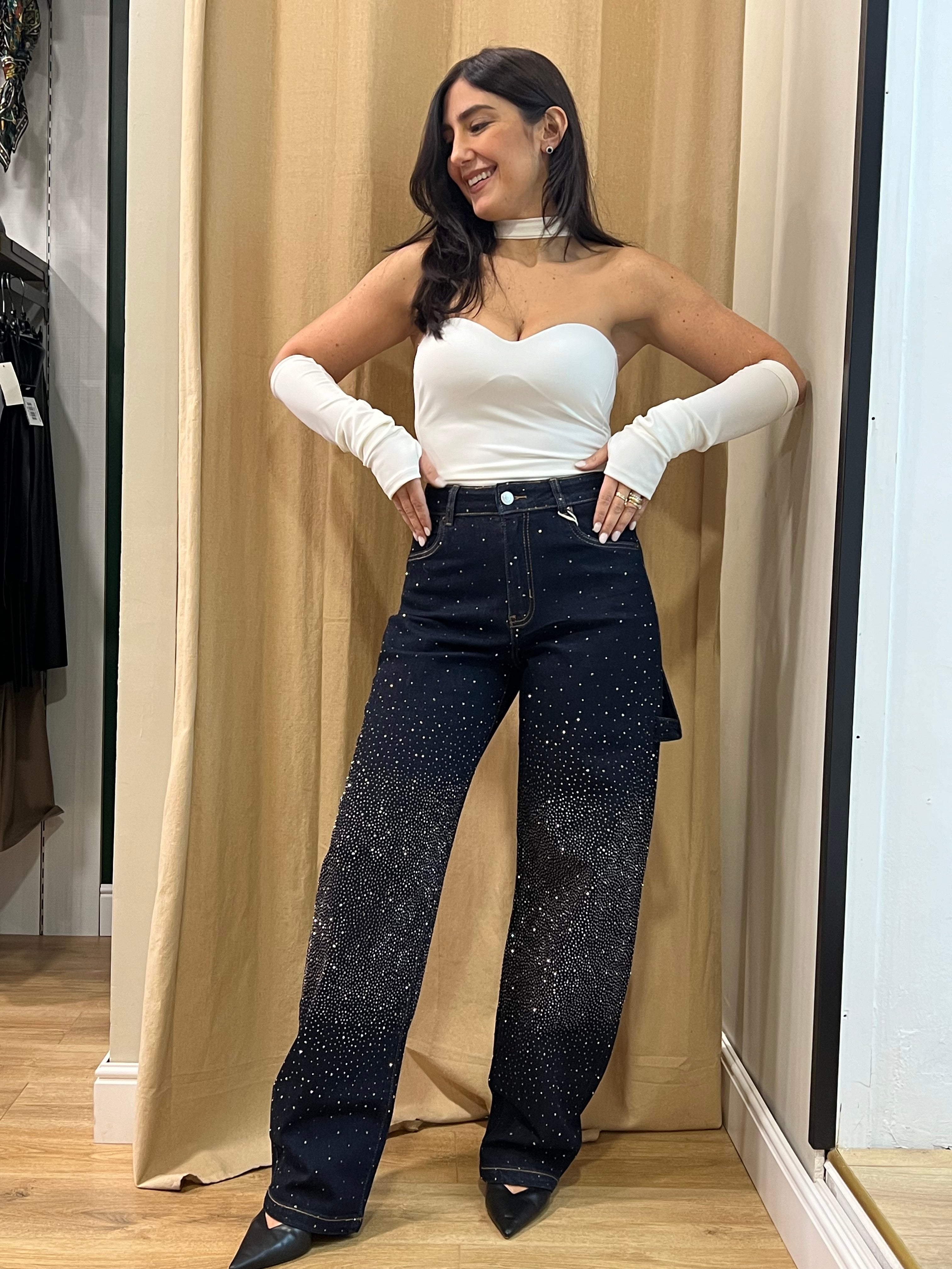 Jeans con strass sfumati