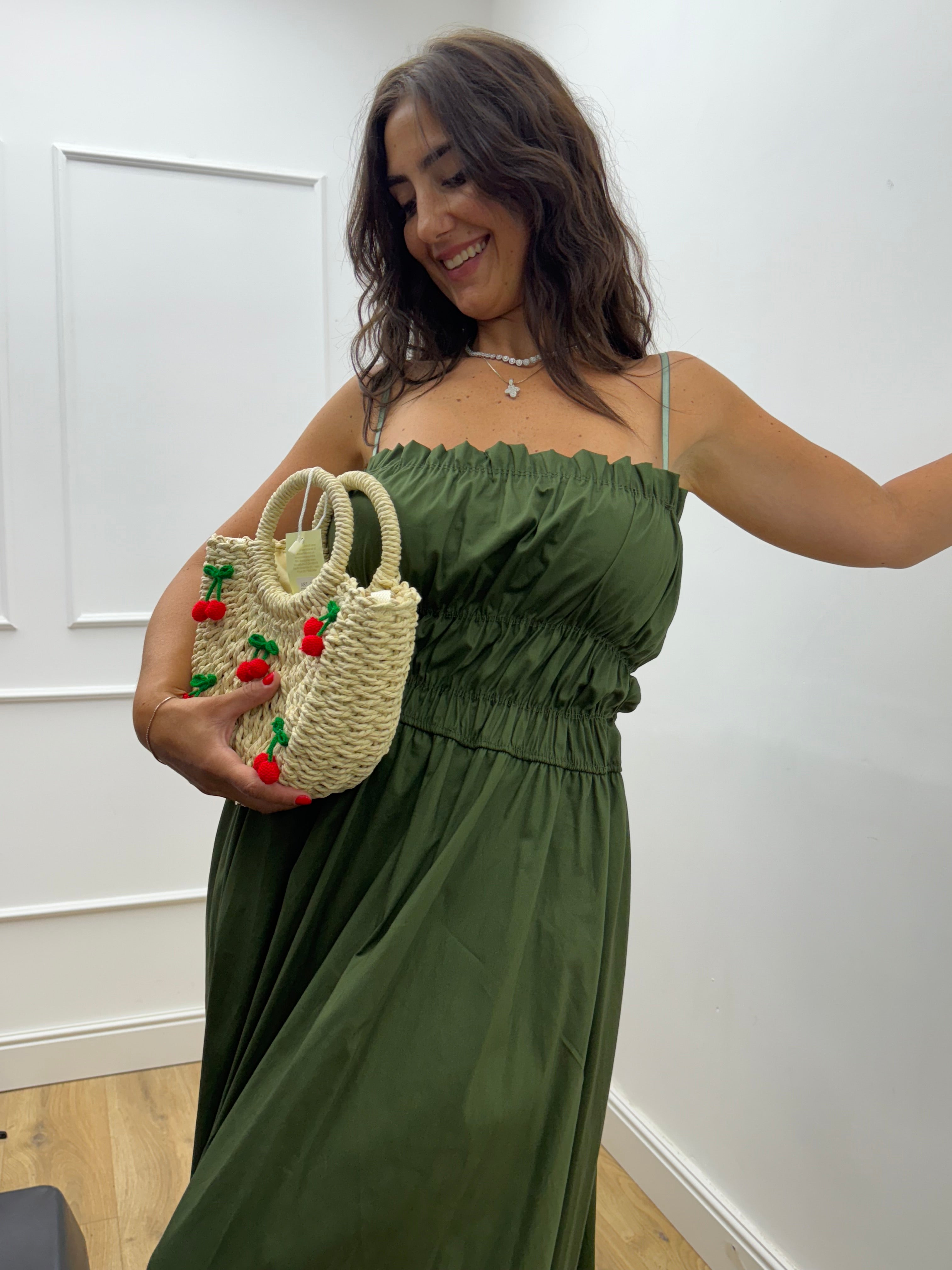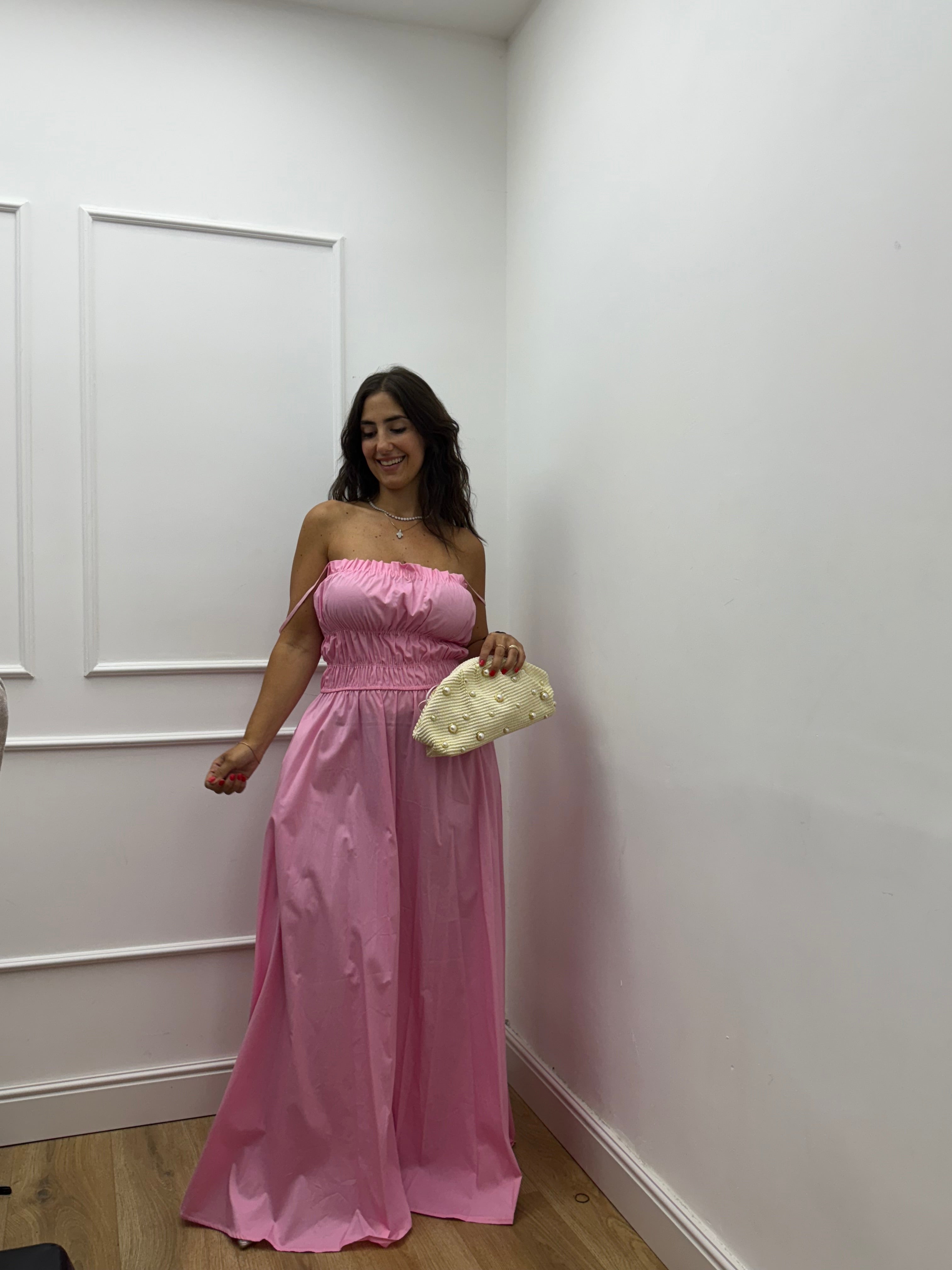Abito lungo in cotone , arricciato, con spallina regolabile