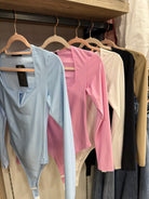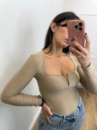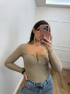 Body in lycra con scollo quadrato e apertura a V con ferretto all’interno
