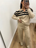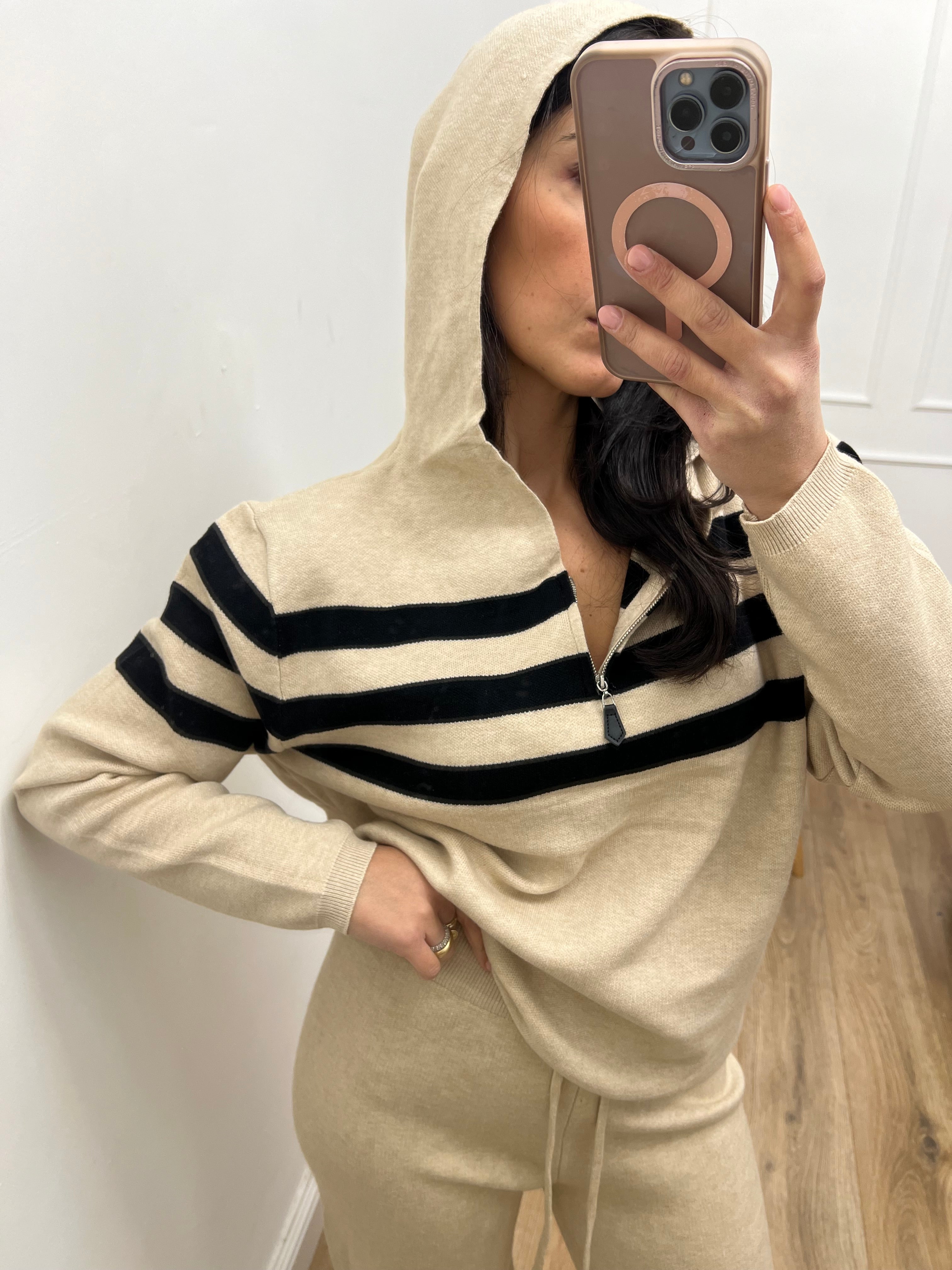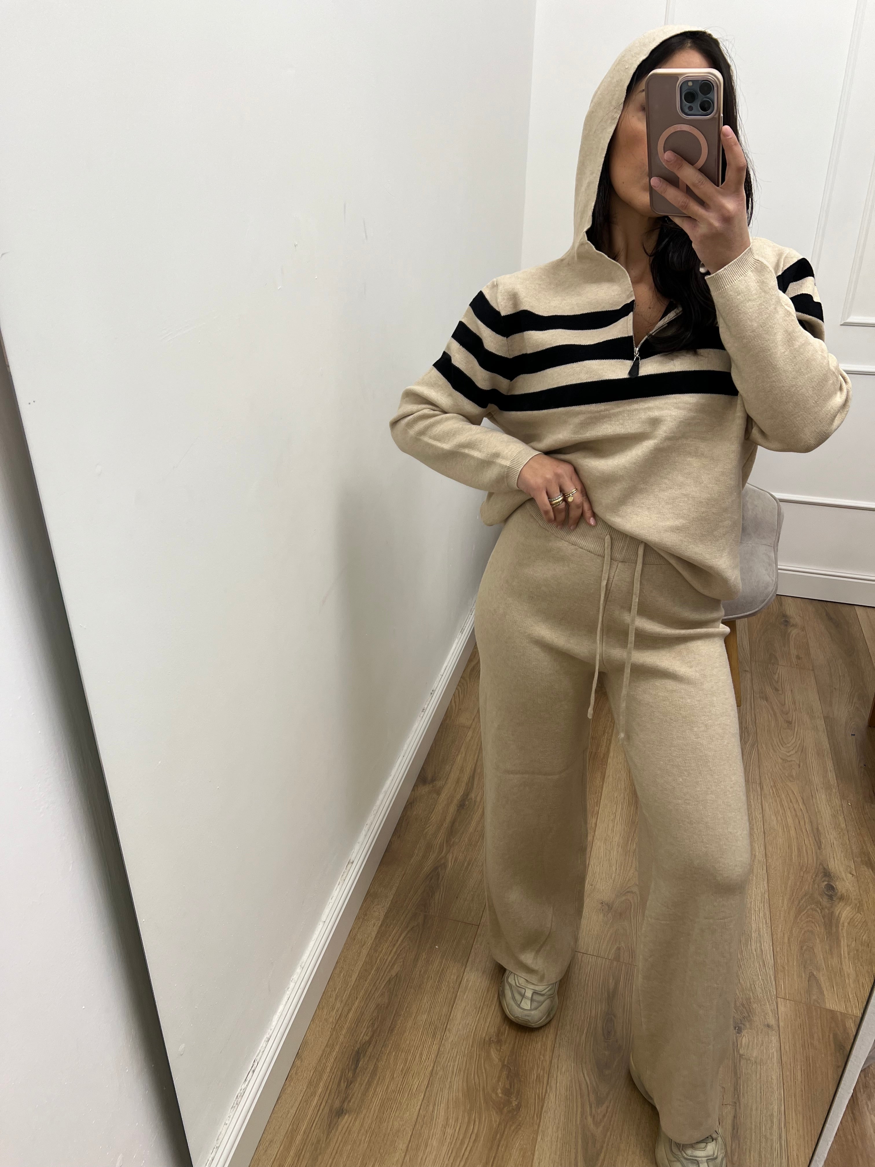 Completo in lana maglia con zip e cappuccio con pantalone abbinato