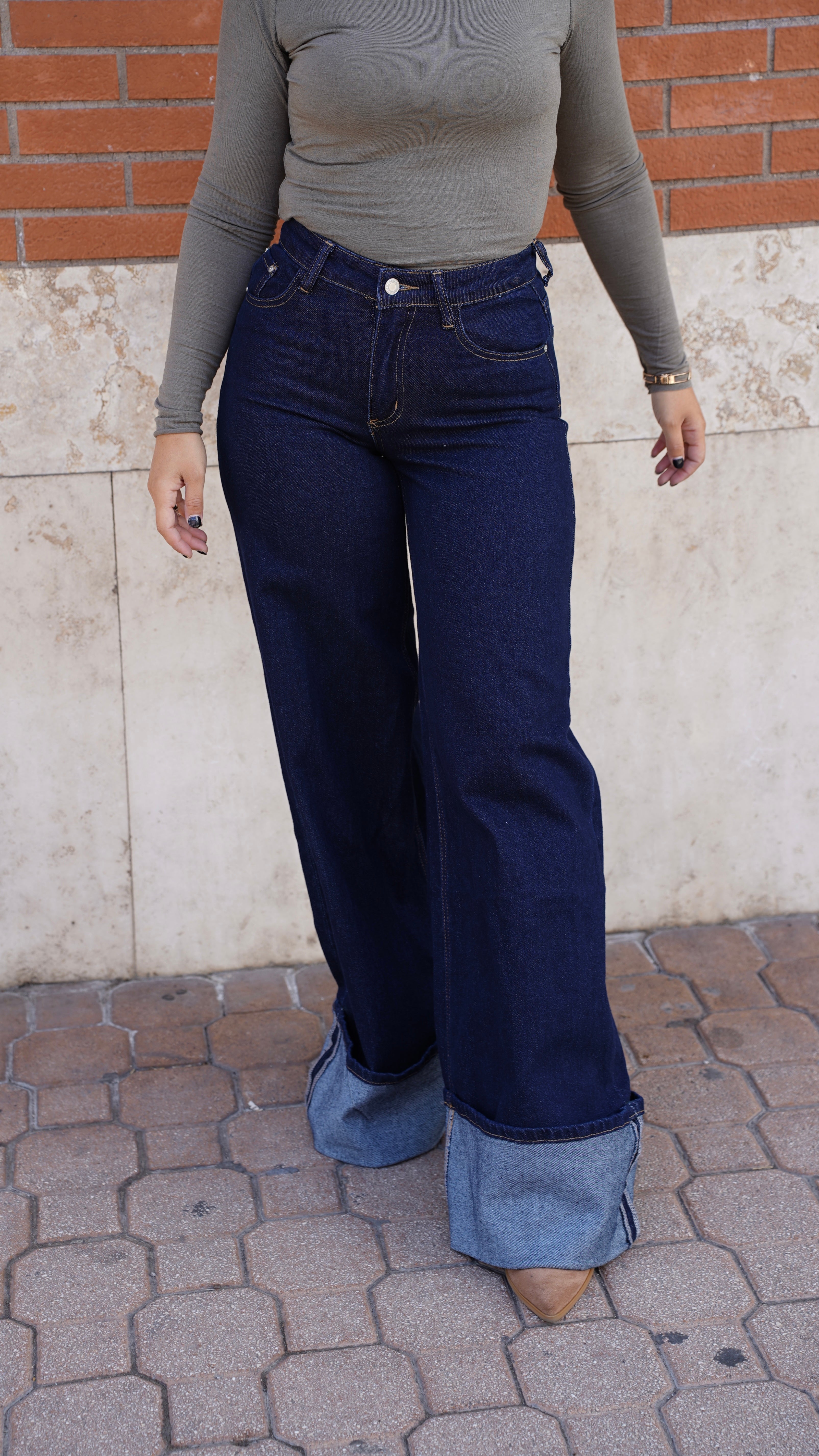 Jeans lavaggio zero fit palazzo con piegone