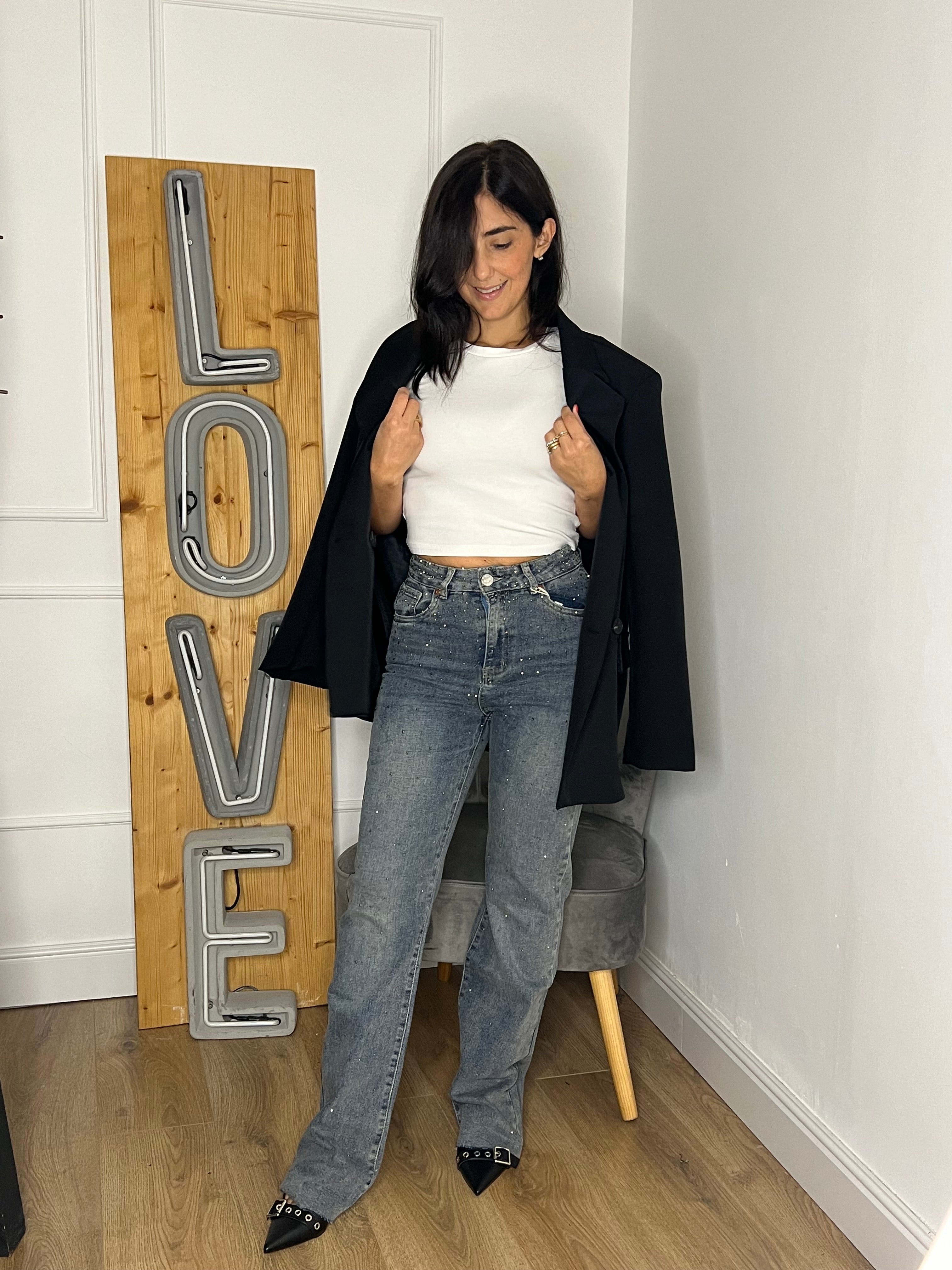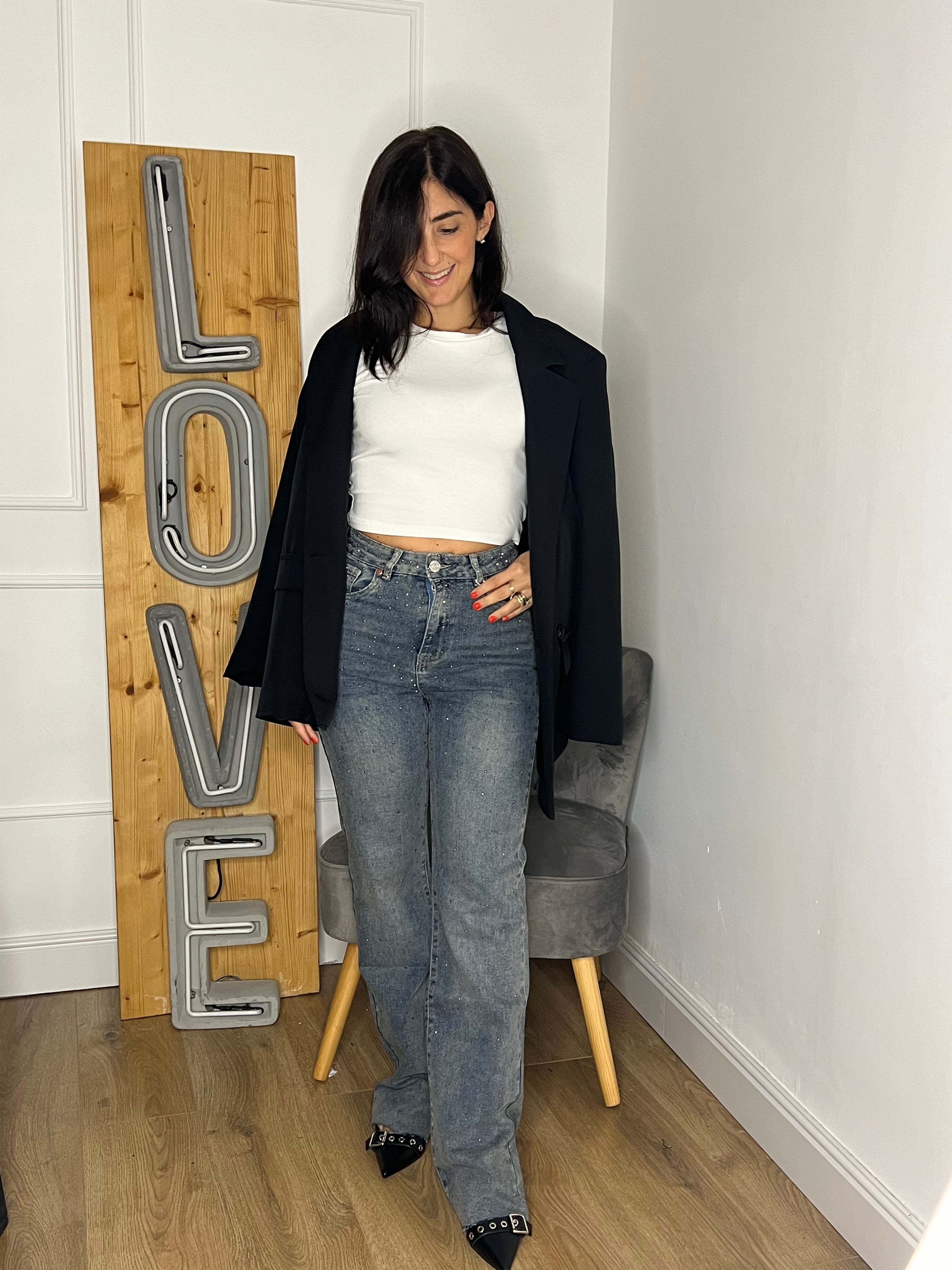 Jeans palazzo con brillantini