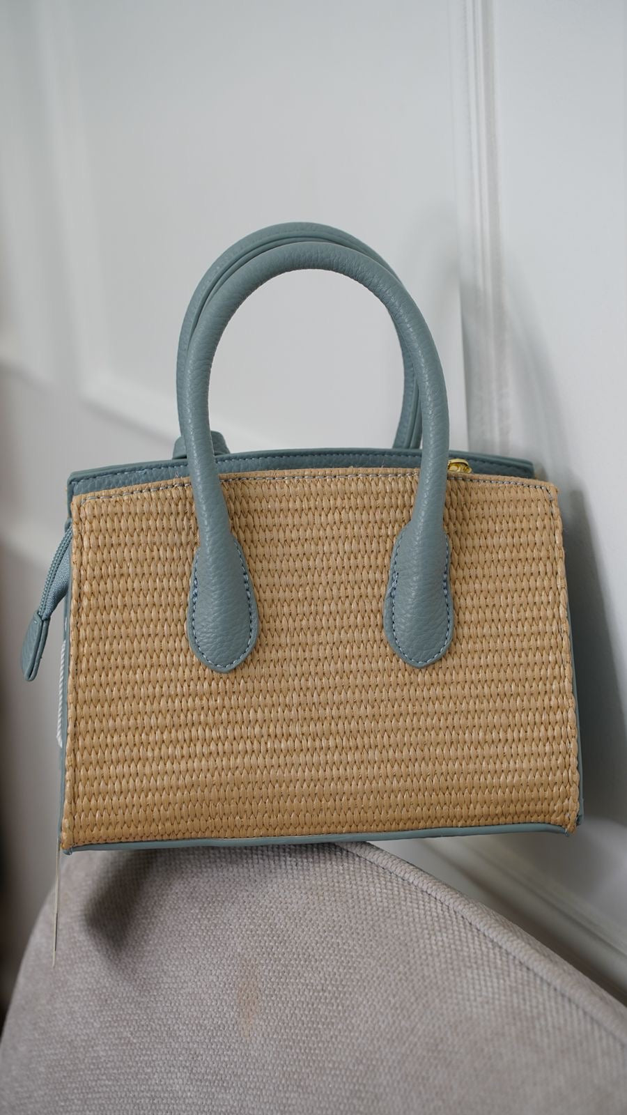 Borsa in rafia con ecopelle