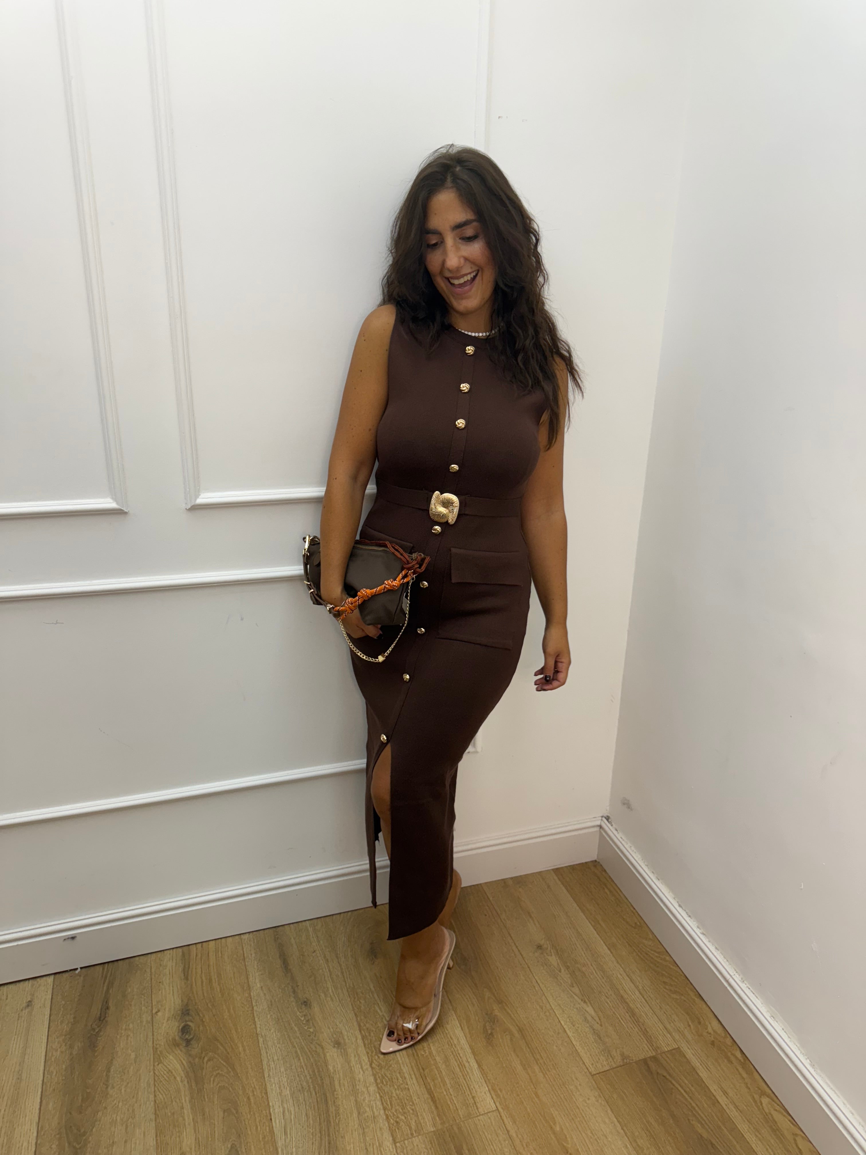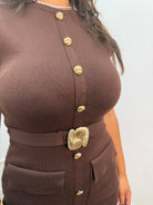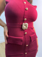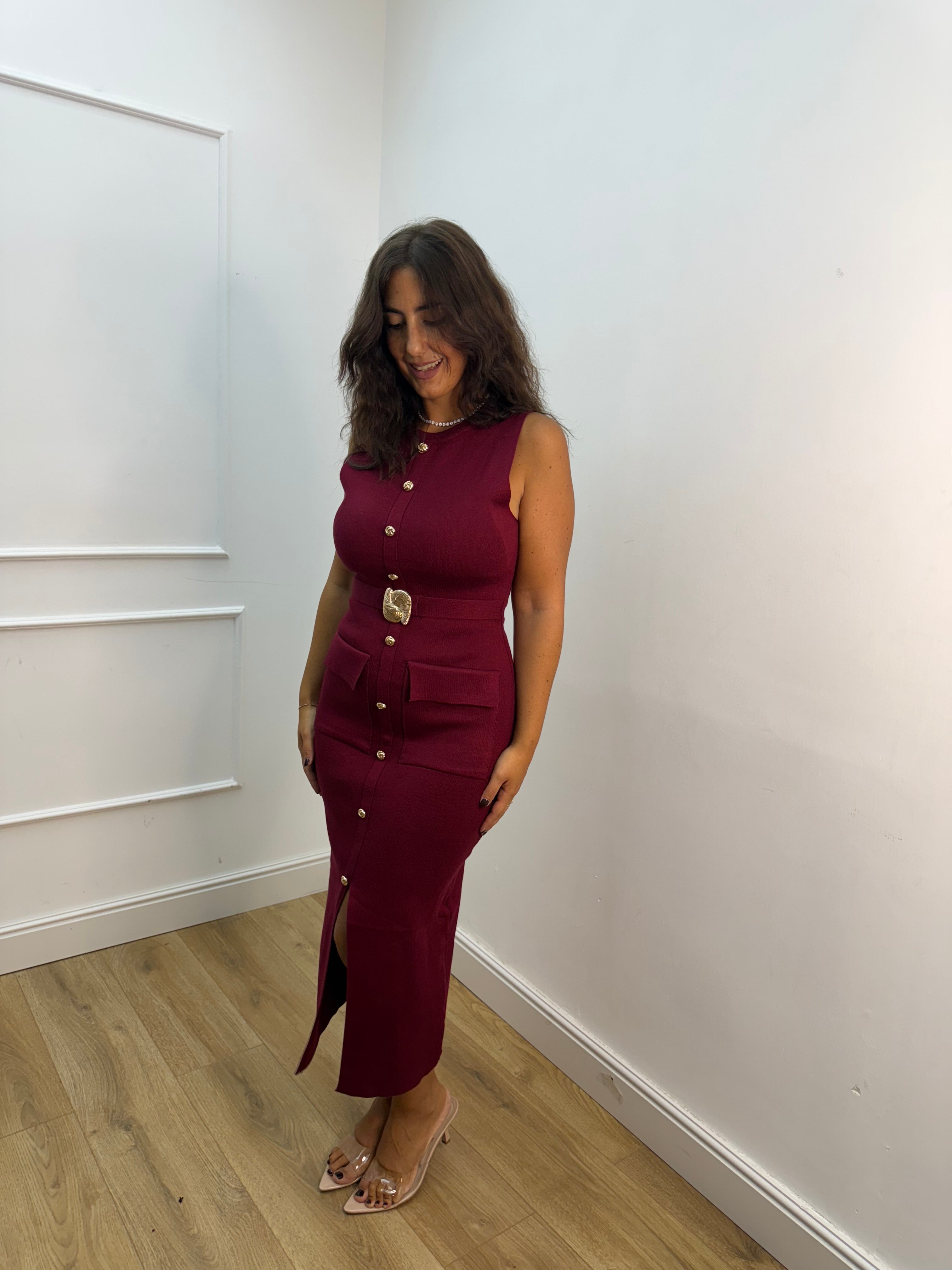 Abito giromanica , tg Unica , dettagli bottoni e cintura finti . Tessuto strutturato