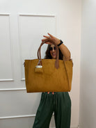 Borsa in suede molto ampia , con charm sulla manica