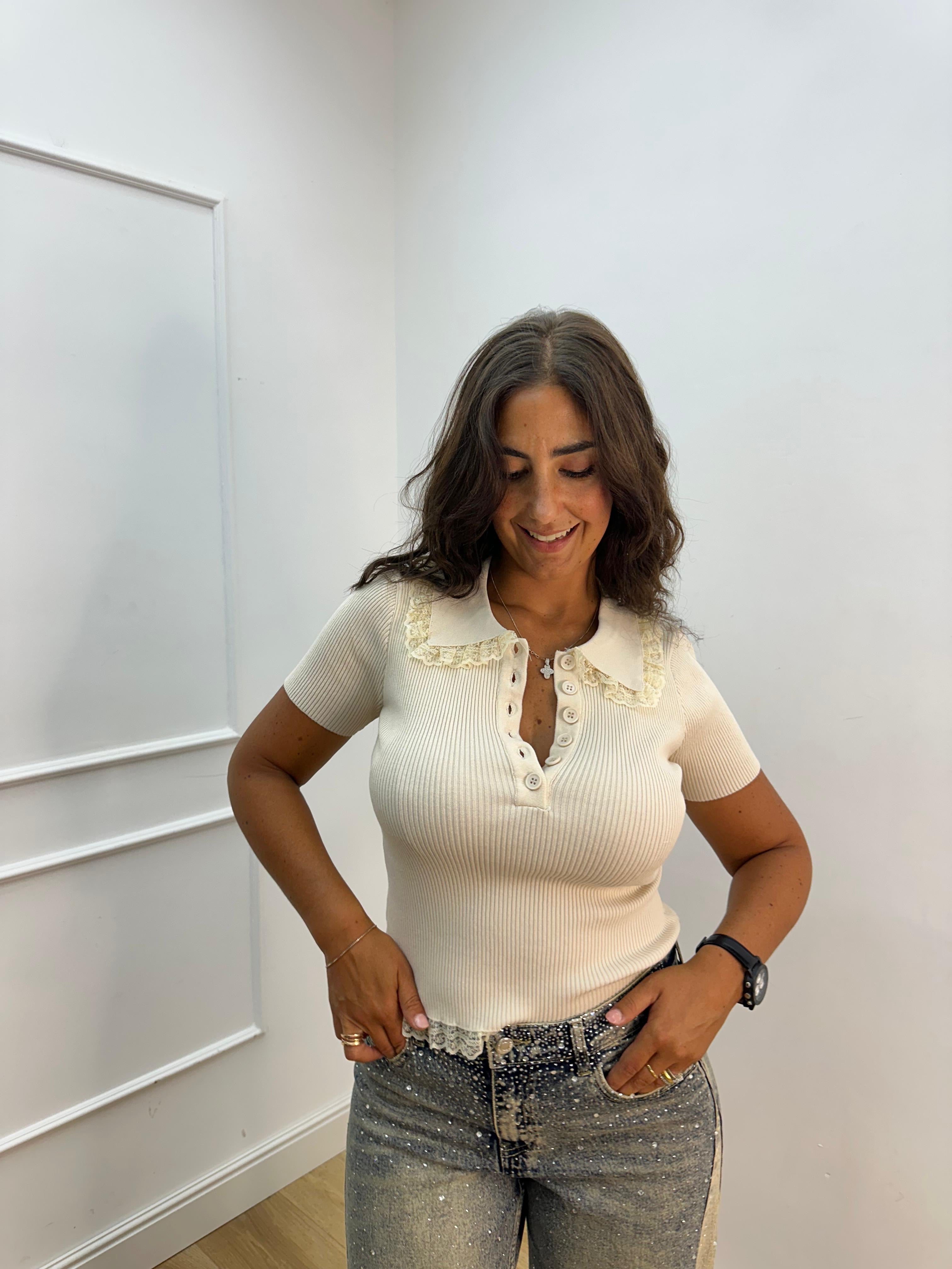 Polo tg U con dettaglio pizzo
