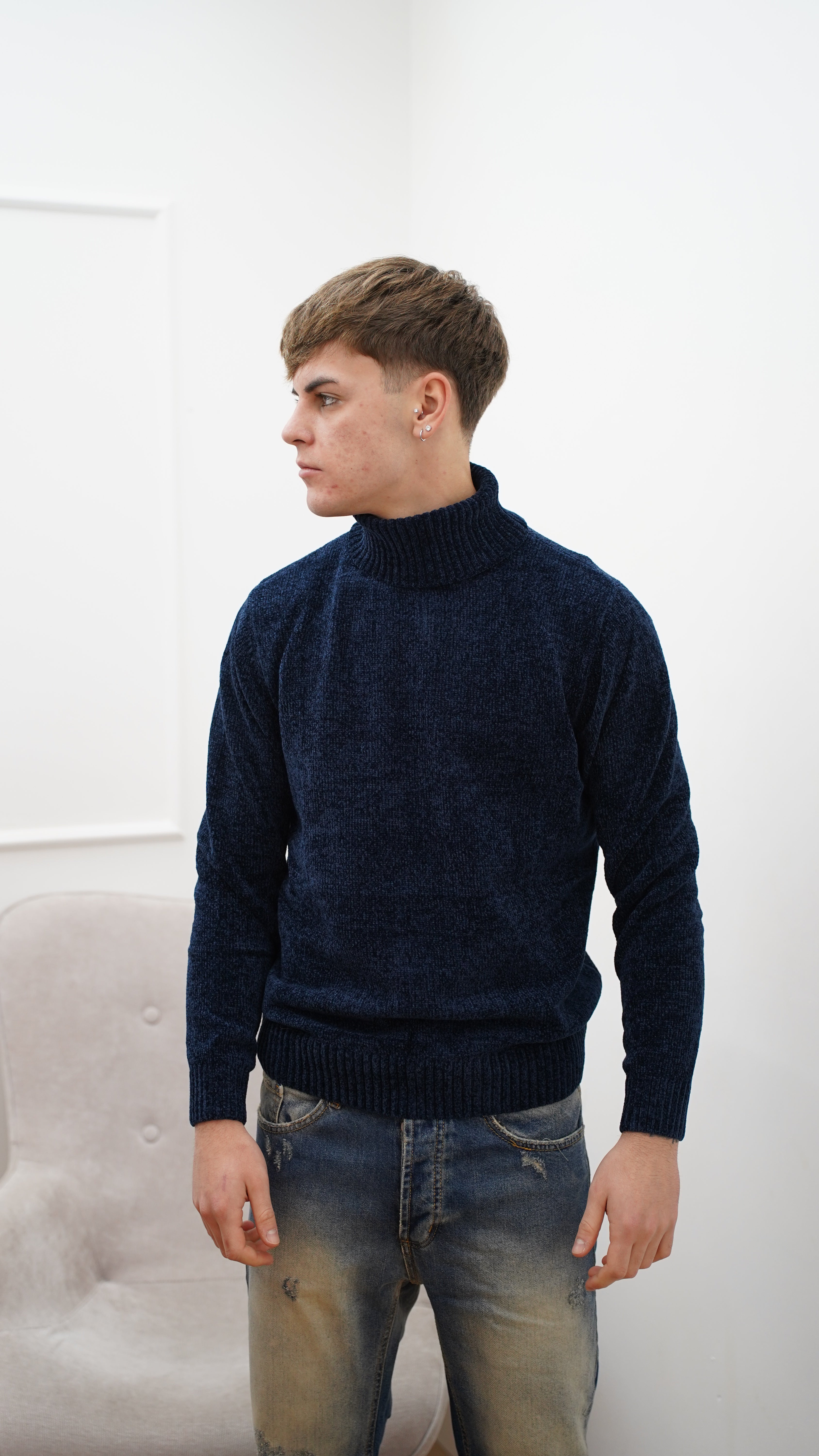 Maglione collo alto in ciniglia